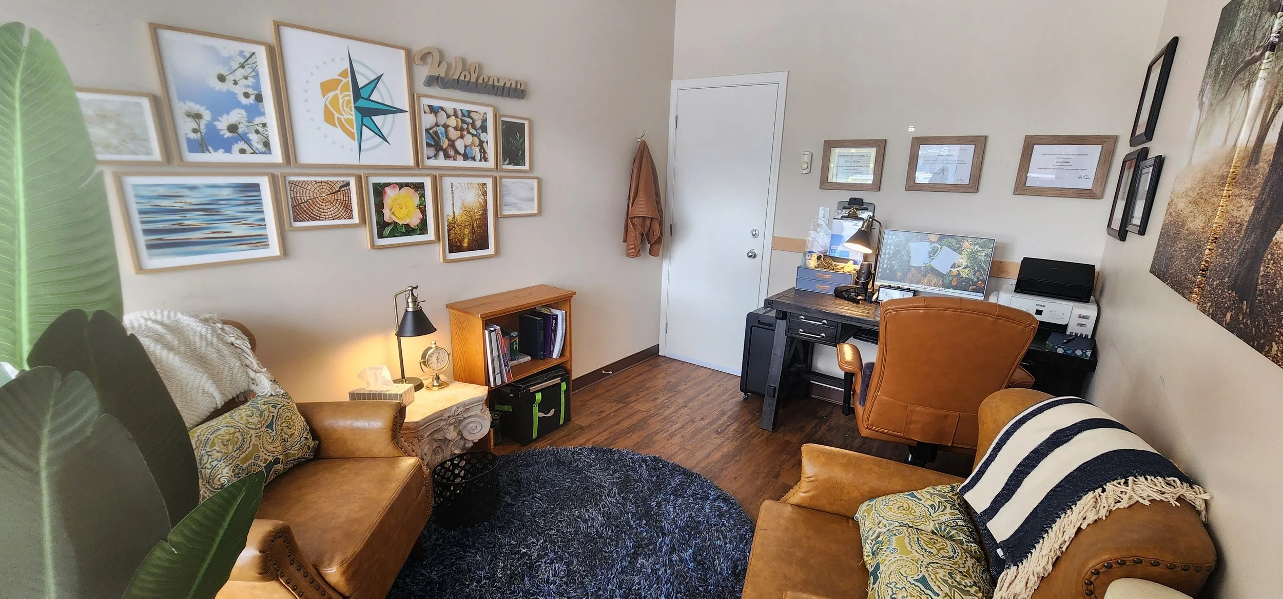 The office has been intentionally curated to offer a barrier free, confidential and soothing environment where clients can be comfortable to explore their concerns.